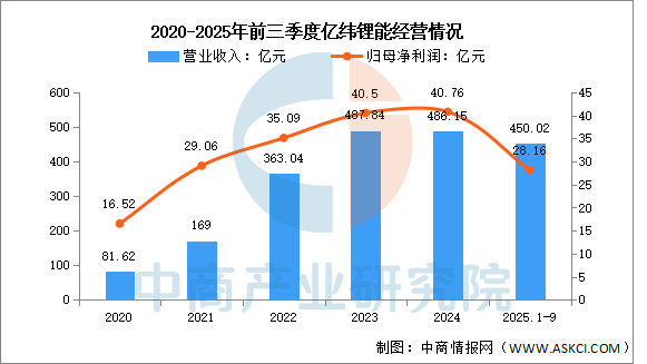 2025年前三季度實(shí)現(xiàn)營(yíng)業(yè)收入450.02億元,同比增長(zhǎng)32.17%;實(shí)現(xiàn)歸母凈利潤(rùn)28.16億元,同比下降11.7%。2025年上半年主營(yíng)產(chǎn)品包括動(dòng)力電池、儲(chǔ)能電池、消費(fèi)電池,營(yíng)收分別占整體的45.26%、36.56%、18.03%。