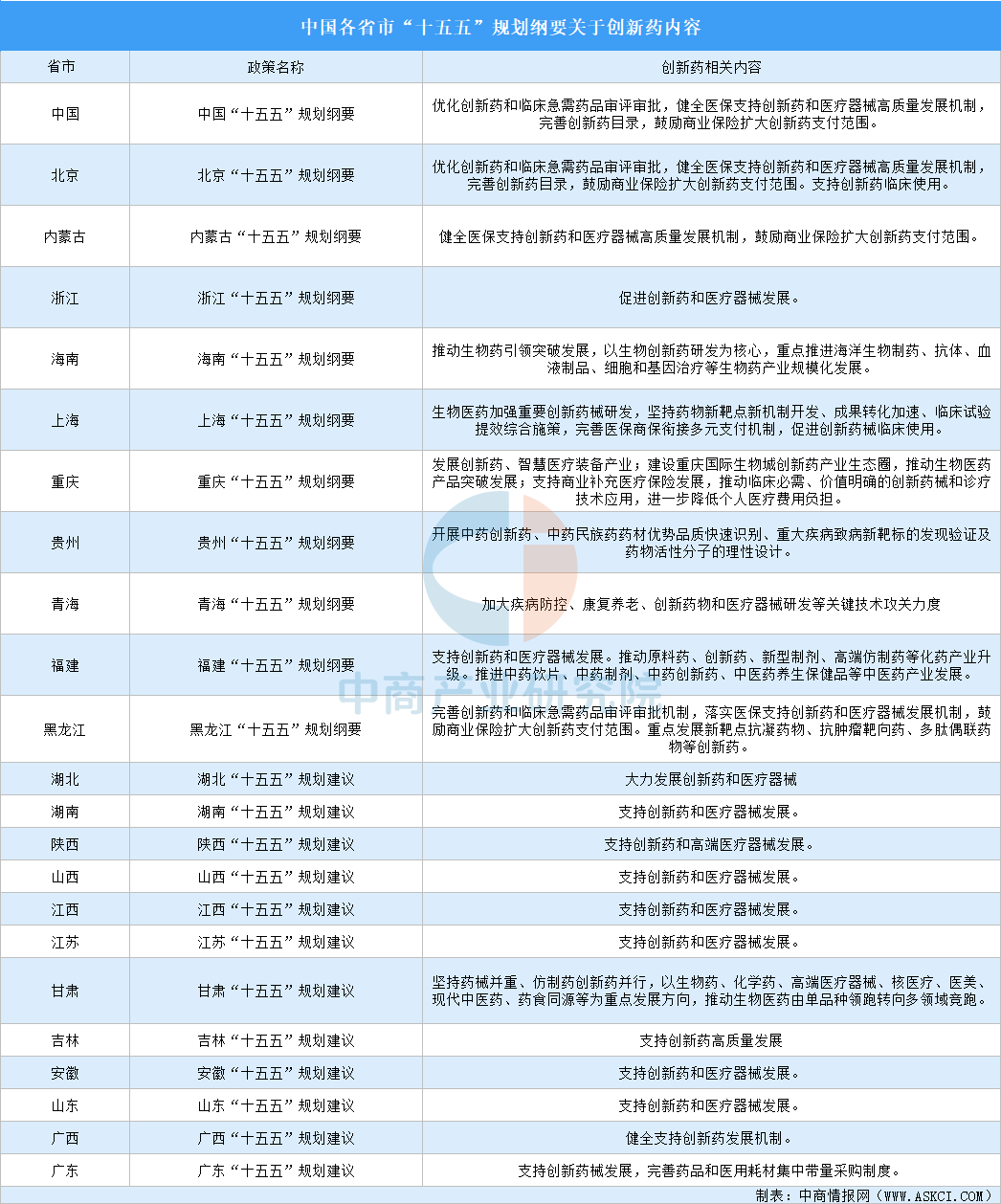 各省市“十五五”規(guī)劃建議創(chuàng)新藥內(nèi)容匯總(圖)