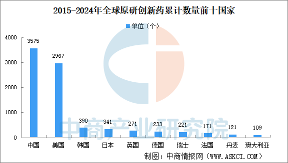中國企業(yè)自研創(chuàng)新藥臨存量數(shù)量也位居第一。2015-2024年,中國企業(yè)研發(fā)的活躍狀態(tài)創(chuàng)新藥數(shù)量累計(jì)已達(dá)到3575個(gè),美國、韓國、日本及英國分別為2967個(gè)、390個(gè)、341個(gè)和271個(gè)。