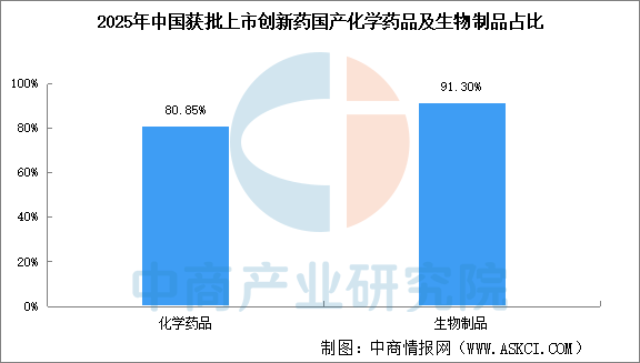 近年來國內(nèi)政策大力扶持創(chuàng)新藥發(fā)展,從研發(fā)、審批、進(jìn)院、支付等多個(gè)環(huán)節(jié)全方位力挺國產(chǎn)創(chuàng)新藥發(fā)展。目前,國產(chǎn)創(chuàng)新藥正以更快的速度和更低的成本推進(jìn)開發(fā)。2025年國家藥監(jiān)局批準(zhǔn)上市的76個(gè)創(chuàng)新藥包括47個(gè)化學(xué)藥品、23個(gè)生物制品和6個(gè)中藥。47個(gè)化學(xué)藥品中,38個(gè)為國產(chǎn)創(chuàng)新藥,9個(gè)為進(jìn)口創(chuàng)新藥,國產(chǎn)創(chuàng)新藥占比達(dá)80.85%;23個(gè)生物制品中,21個(gè)為國產(chǎn)創(chuàng)新藥,2個(gè)為進(jìn)口創(chuàng)新藥,國產(chǎn)創(chuàng)新藥占比達(dá)91.30%。