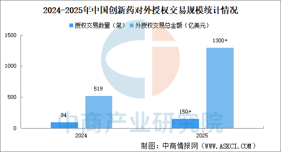 近年來(lái),中國(guó)創(chuàng)新藥對(duì)外授權(quán)(BD)交易規(guī)模較快增長(zhǎng)。2025年中國(guó)創(chuàng)新藥出海實(shí)現(xiàn)爆發(fā)式增長(zhǎng),對(duì)外授權(quán)交易總金額超過(guò)1300億美元,授權(quán)交易數(shù)量超過(guò)150筆,遠(yuǎn)超2024年的519億美元和94筆,創(chuàng)歷史新高,標(biāo)志著我國(guó)從“仿制藥生產(chǎn)大國(guó)”邁向“創(chuàng)新藥輸出大國(guó)”。監(jiān)管部門(mén)指出,這一變化反映出國(guó)際醫(yī)藥企業(yè)對(duì)中國(guó)創(chuàng)新藥研發(fā)能力的認(rèn)可,也顯示中國(guó)正在成為全球創(chuàng)新藥資產(chǎn)的重要來(lái)源地。