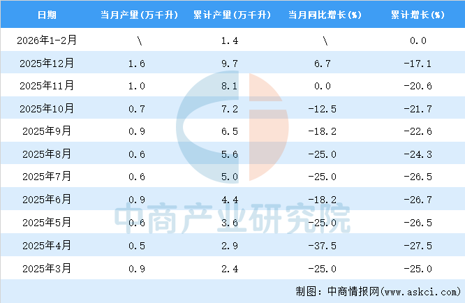 中商情報網(wǎng)訊:據(jù)中商產(chǎn)業(yè)研究院數(shù)據(jù)庫,2026年1-2月全國葡萄酒產(chǎn)量為1.4萬千升,同比持平。